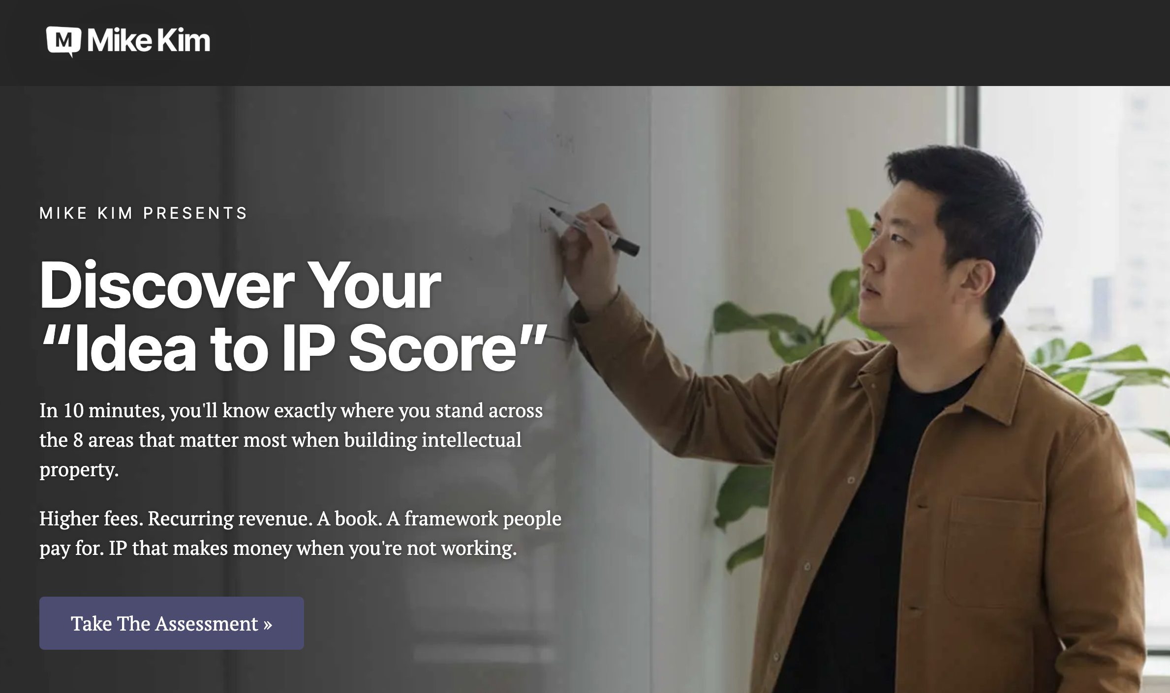 The assessment takes about 10 minutes (most do it in under five… I’ve been testing it the past three months). You answer 30 questions based on real-world scenarios from experts who’ve built successful businesses around their intellectual property.